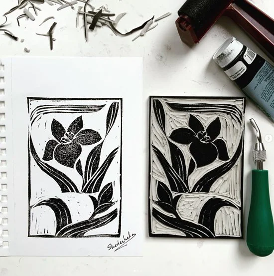 Week 1: Linocut inspired by research of Japanese woodcuts